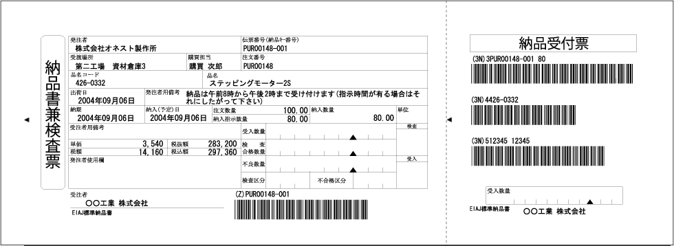 バーコード処理により、入荷処理の迅速化が図れます。